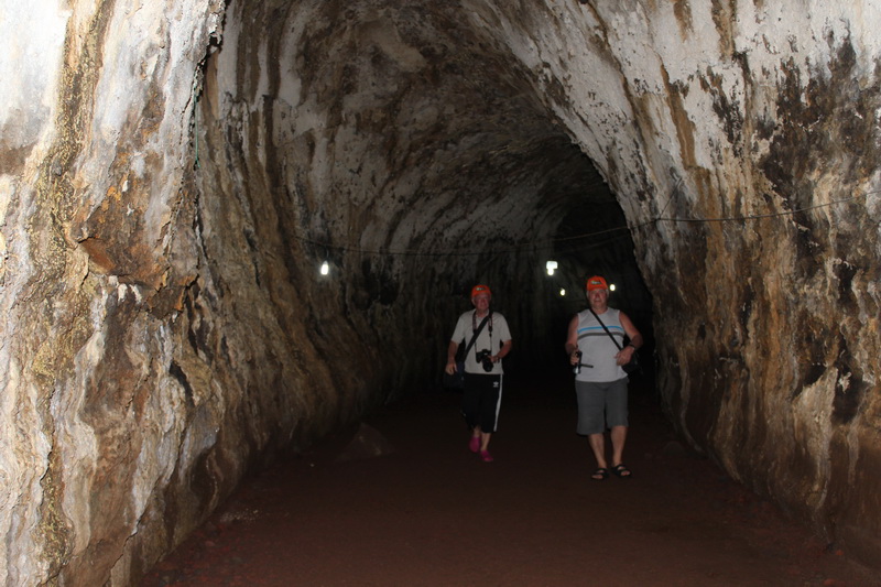 Bu krater içerisinde volkanik patlama sonucunda oluşmuş lav tünelleri de yer alıyor. Bunu da Collapse Craters olarak adlandırıyorlar. Biz de bu lav tünellerinden birinin içerisine girdik. Tünelin uzunluğu 400 metre, ancak sonuna kadar yürünmesi yasak o nedenle biz de yaklaşık 100 metresini yürüyoruz.