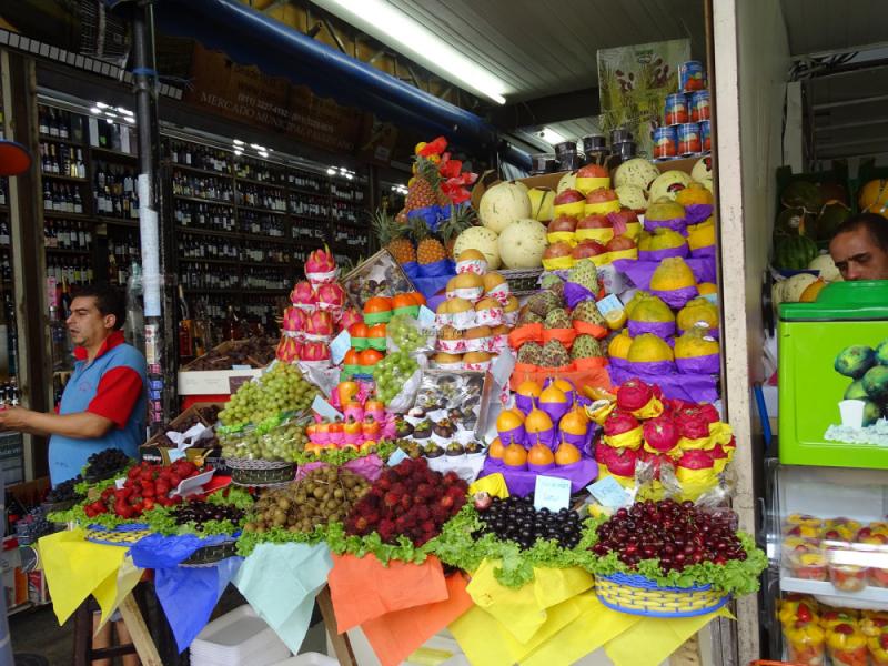 Öğlen yemek yeme vakti gelmişti ve Anitalar bizi Mercado Municipal’e götürdüler, yani şehir çarşısına. Bu çarşı, Avrupa’da ve Güney Amerika’da birçok örneği bulunan Mercado’ların güzel bir örneğiydi. Dünyanın her yerinden gelen meyve ve sebzeler çok zengindi. Deniz ürünleri, tuzlama balıklar, et ve jambonlar, kısacası tüm gıda ürünleri bütün azametiyle sergileniyordu. Çarşının üst katında ise lokantalar vardı. Öğlen fazla bir şey yemeyi sevmediğimizden, sadece Brezilya’ya özgü empanadas yedik. Bu bir bakıma bizim çibörek ya da pişilerimize benziyor. İçine peynir, patates ya da ot koyabiliyorlar. Brezilya’nın milli içeceği ise caipirinha. Bu içkinin özü, “cachasa” denen fermente edilmiş şeker kamışından yapılmış bir çeşit rom. Limon ve buzla karıştırılıp servis ediliyor. Hoş bir kokteyl ama şeker özü olduğu için şişmanlattığını tahmin ediyorum. Bu içkiye votka konulduğunda caipirivodka diyorlar. Karşınızda Mercado Municipal: