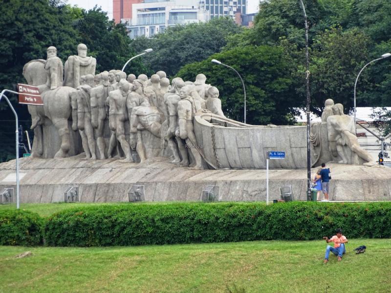 Mercadodan sonra Sao Paulo’nun ilk binasını görmeye gidiyoruz. İlk bina postane olarak yapılmış, sonradan kiliseye dönüştürülmüş. Yanında da eski adliye binası var. İki binanın ortasındaki meydanda güzel bir heykel var. Yüksek bir kaide üzerindeki uzun sütunun tepesindeki kadın meşale taşıyor. Özgürlük heykeline benziyor. İlk gelen Portekizliler için dikilmiş.