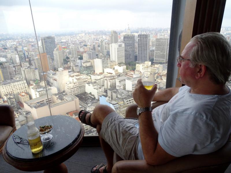 TERRAÇO İTALİAParklardan sonra hedefte Terraço İtalia binasının tepesindeki kafede birşeyler içmek var. Amaç manzarayı seyretmek. Sao Paulo’nun en güzel manzarası buradaymış. Taksiye atlayıp gidiyoruz. Sao Paulo’da taksi ücretleri çok pahalı değil. Metro da iyi bir seçenek. Otobüs hatları ile uğraşmanızı tavsiye etmem. Çok çalışmanız gerek. Terraço İtalia binasının 41. katındaki teras kafeye çıkıp biralarımızı içerken, gerçekten tüm Sao Paulo’ya hakim olan bu noktadan dalıyoruz seyre. Bina, bina, bina, o kadar çok irili ufaklı beton yığını görüyoruz ki, parkları gezmesek ve insanların bu beton yığını arasında nasıl nefes aldığını görmesek bize hilkat garibesi gibi gelecekti bu şehir.