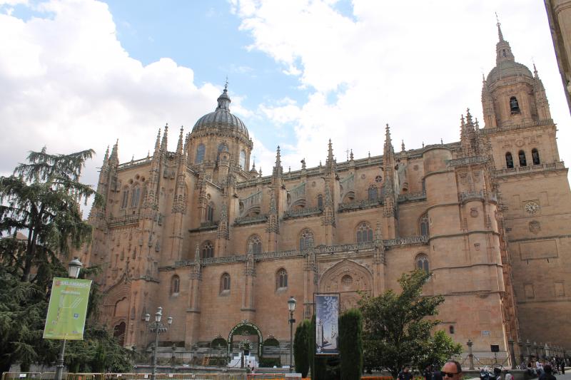 Şehrin merkezinde tüm ihtişamı ile yer alan bu katedral, Gotik mimarinin baş yapıtlarından biri olarak kabul edilmektedir. Yapı, 16. yüzyılda inşa edilmeye başlanmış, ancak 1733 yılında tamamlanabilmiştir. 20. yüzyılda yapılan bir restorasyon sırasında, giriş kapılarından birinin üzerine eklenen astronot heykeli, günümüzde halen merak edilmektedir. Binanın içerisine restorasyon çalışmaları nedeniyle maalesef girememiştim ama yakınındaki Universidad Pontificia de Salamanca’ nın kulelerine çıkarak muhteşem Salamanca Katedrali manzarasını izledim.