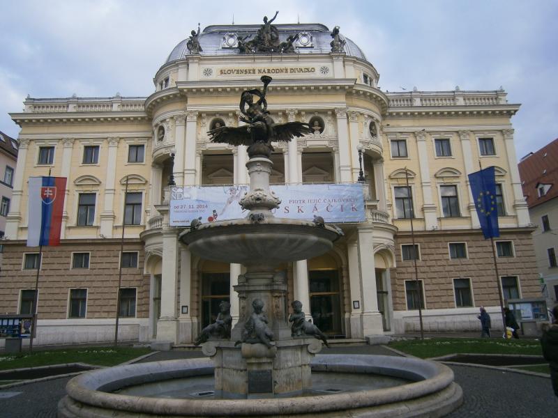Günümüzde Slovak Ulusal Tiyatro ve Bale Topluluğu tarafından kullanılan Slovak Ulusa Tiyatro Binası (Slovenske Narodne Divadlo = Slovak National Theatre) şehrin en gurur duyulan binalarının başında gelmektedir. Viyanalı mimarlar Fellner ve H.Helmer’in tasarımı olan binanın yapım yılı ise 1886’dır. Binanın önünde ise mimar Tilger tarafından tasarlanmış bir havuz yer almaktadır. Havuzu ve tiyatro binasını arkanıza aldığınızda ise göreceğiniz geniş ve uzun bir parkı boydan boya yürüyecek olursanız bitim noktasında sizi tekrar başladığınız noktadaki veba anıtı karşılayacaktır. Parkın ortasında ise ünlü Slovak şair Pavol Hviezdoslav’ın elinde kağıt ve kalemi ile heykelini göreceksiniz. Son olarak paylaşmak istediğimiz bilgi ise şehrin genelini görmek için tramvay gezisini öneririz.