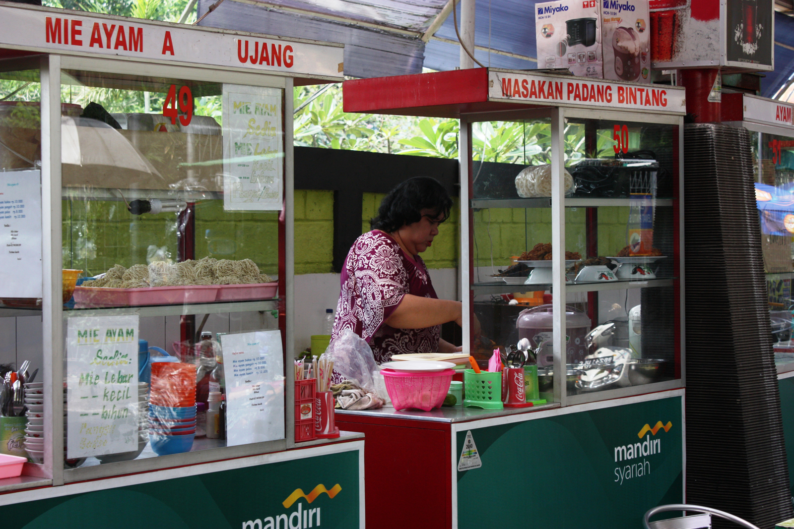 Endonezya halkı arasında evde yemek yeme kültürü çok zayıf. Özel günler dışında evde yemek yenmiyor. O nedenle bütün ara sokaklarda, özellikle akşam oldu mu sokak restoranları kuruluyor ve aileler yemeklerini buralarda yiyor. Çok zenginler dışında orta sınıf yok denecek kadar az bu ülkede. Ya zenginsin ya da fakir. Ama herkes aynı yerde oturup kalkıyor, herkes aynı yerde yemek yiyor...