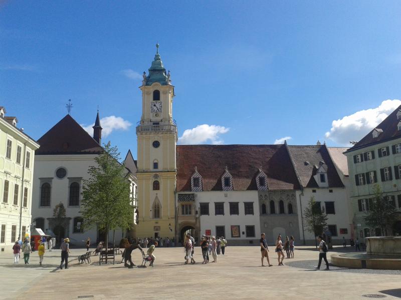 Gelelim başkent ve etkilendiğim şehir Bratislava. Kasvetli bir hava, Kosice'ye nazaran daha kalabalık...