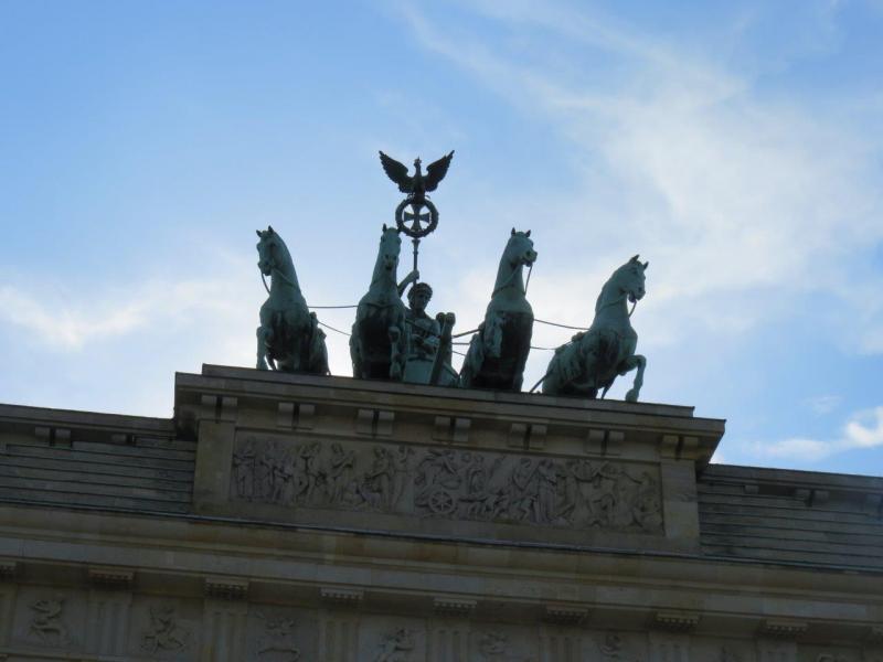 Anıtın hemen yanında yer alan Brandenburg Kapısı, kuşkusuz şehrin en eski yapılarından birisidir. Kentin her dönem en önemli sembolü olan Brandenburg Kapısı'nın üstünde Quadriga denen, atlı araba heykeli bulunuyor. Napolyon Prusya’yı yenip Berlin’e girdiğinde bu heykeli alıp Paris’e götürmüş. Daha sonra Prusyalılar Fransa’yı yendiklerinde heykeli geri getirmişler. Fakat bu sefer heykelde yer alan zeytin dalını, demir haç ile değiştirmişler. Nazi döneminde de sembol görevi gören kapı, savaş sırasında çok büyük hasar gördü fakat yıkılmadı. Kennedy’nin de ziyaret ettiği kapı, Doğu ve Batı Alman hükümetleri tarafından onarıldı ve Duvar’ın yıkılmasıyla beraber tekrar ziyarete açıldı.
