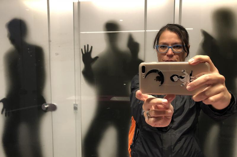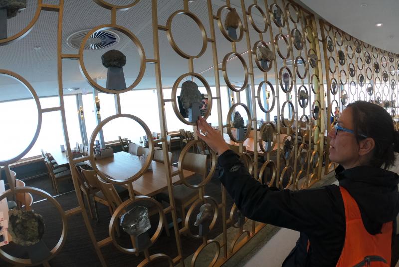 Ve bir üst kat. İşte tam bu katta kafe, hediyelik ürün mağazası ve de manzara terası var. Teras 360 derece. Harika yapılmış ve eminim ki açık havada manzara da harikadır. Ama maalesef bizim şansımıza sisten neredeyse burnumuzun ucunu bile göremedik. O nedenle terasta da fazla vakit geçirmedik.