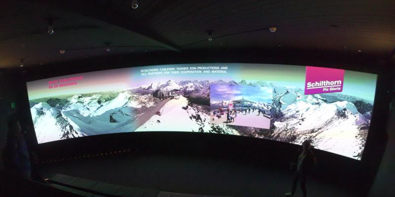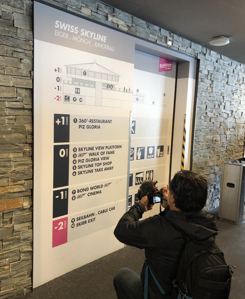 Buradan sonra artık zirveye bir 300 metremiz falan kaldı. Oraya da teleferikle çıkıyoruz ve ulaştığımız yer Schilthorn’un Tepesi – Piz Gloria. Deniz seviyesinden tam 2970 metre yüksekteyiz. Vardığımız noktada çok güzel bir merkez var ve 4 kattan oluşuyor. İlk vardığımız nokta -2. kat, yani teleferiğin ulaştığı alan.