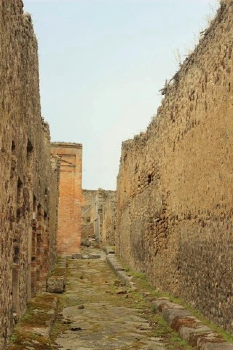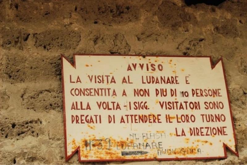 Şehrin geniş bulvarında yürürken rehberimiz bize yerde Lunapare’nin (genelev) yönünde cinsel objeli işaretler kullanıldığından bahsetti. Müşterilerin mekânı kolay bulabilmesi için bu işaretler evlerin duvarlarında ve caddelerde kullanılmış. Aynı zamanda fallus bereket anlamına geldiği için, şekil kadınlar tarafından takı olarak da giyilmiş. Cinselliğin özgürce yaşandığı şehirde, bir süre sonra sapkınlık da boy göstermiş. 24 Ağustos 79 yılında Vezüv Yanardağı patlayıp çevreye saçılan kül ve lavlarla bu zevk ve gösteriş şehrine son vermiş. Şehir 1748 yılında şans eseri ortaya çıkmış. Keşif ilk başladığında arkeologlar, cesetlere dokundukları anda cesetler parçalanıyorlarmış. Bu durum onları zor duruma sokunca arkeologlar bir yol bulmuş.