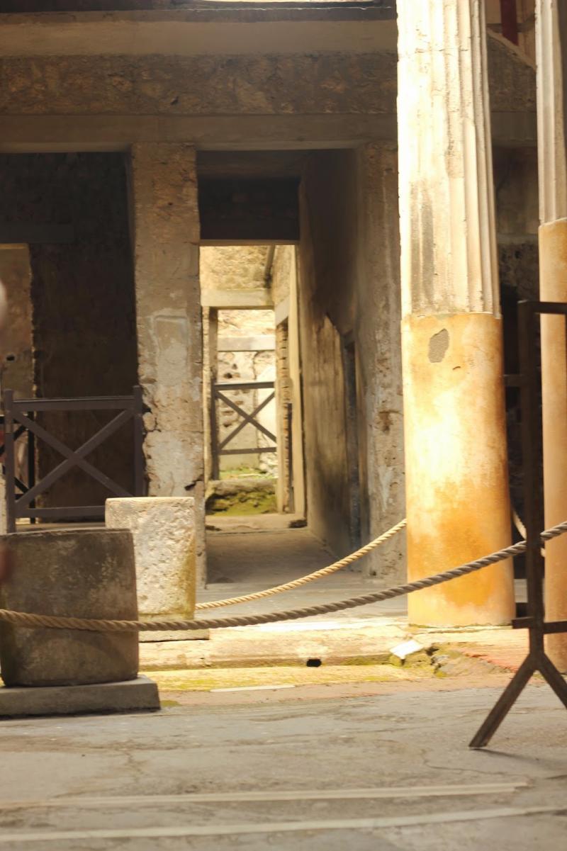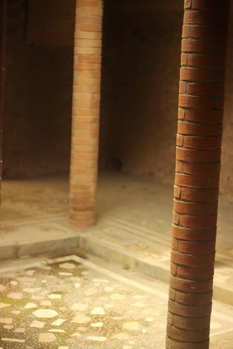 Sokağa bakan kısımlarında tezgâh üzerinde topraktan yapılmış çukur bölmeler göze çarpıyor. Buralarda sıcak yiyecekler satılıyormuş ayaküstü gelip geçenlere. Esasında, tam tersi olması gerekirken; bu şehirde içme suyu kurşun, kullanma suyu ise toprak borularla taşınıyormuş. Hatta kurşun zehirlenmesinden dolayı Pompei krallarının deli oldukları söyleniyor, ben rehberimizin yalancısıyım.