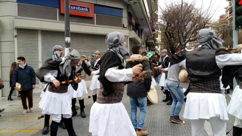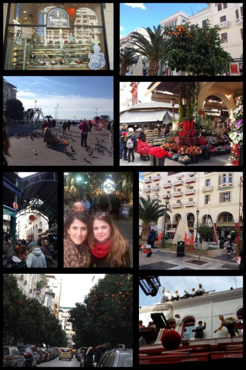 Aristoteles Meydanı'na sahil tarafından girdiğimizde yeni yıl için yapılan hazırlıklar ile karşılaştık. Her yerde bir hareketlilik, süsler, alışveriş yapan insanlar v.s. Burasının gecesini mutlaka görmeliyim diye geçirdim içimden. Selanik’te ayaküstü yiyebileceğimiz lezzetlerinin satıldığı yerler aradık dümdüz yürüyerek. Sahile paralel Tsimiski caddesine geldiğimizde Terkenlis isimli, 1948'de faaliyete başlamış, atıştırmalık pasta-börek tatlı türevlerini bulabileceğiniz bir yer olan kafede mola verdik. Egnatia caddesine doğru dükkânlara gire çıka ilerledik. Bir de baktık ki bir pazara gelmişiz. Et, balık ağırlıklı kurutulmuş meyvenin de satıldığı Modiano pazarına uğradık.