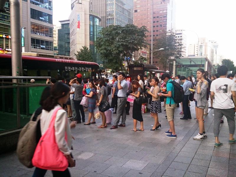 Yaklaşık 30-40 dakikalık bir yolculuk sonrası Gangnam'a geliyoruz. Otobüs şoförü gösterdiğimiz durakta bizi indiriyor. Bulunduğumuz durak otele çok yakın ancak faydalanacağımız bütün sokak, cadde isimleri Korece yazıldığından afallıyoruz : ) Birkaç kişiye derdimizi İngilizce anlatmaya çalışıyoruz ancak hiçbiri İngilizce bilmiyor. Biraz bekleyip, birkaç kişiye daha sorduktan sonra nihayet derdimizi anlayan biri çıkıyor. Sağolsun o da Japonya'daki arkadaş gibi bizi peşine takıp otele götürüyor, hatta bavullarımızdan birini o taşıyor, Uzak Doğu ülkeleri insanları muhteşem yaa : )