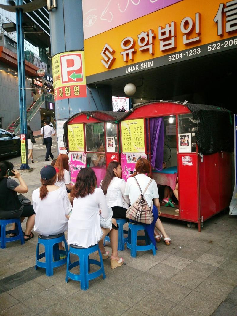 Dolaşırken biraz ilerideki kulübeler dikkatimizi çekiyor. Gangnam sokaklarından bu tarz dükkân çok var ve hepsinin önünde kızlar bekliyor : )