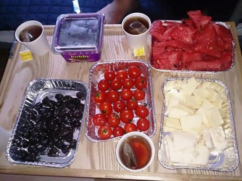 Otele dönüp nihayet keyifli bir Türk kahvaltısı yapıyoruz. Bu arada domates ve karpuzu marketten aldık.