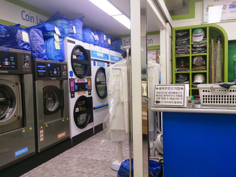 Çamaşır ve Kurutma makineleri bozuk para ile çalışıyor. Yaklaşık 8-10 kg çamaşırınızı 1 saat içinde 15-20 TL karşılığı yıkatıp kurutuyorsunuz. Vaktimiz olduğundan çamaşırlarımızı atıp dükkânda beklemeye koyuluyoruz. Dükkânın önünle sohbet ederken önümüzden bir zerzevatçı arabası geçiyor, açıkçası Seul’de bu kadarını beklemiyorduk : )