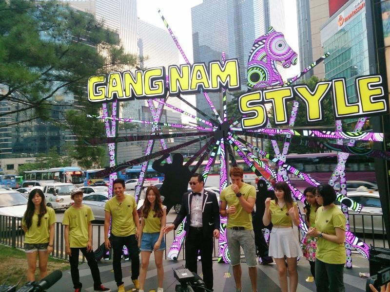 Bu bir firmanın tanıtım kampanyası için yapılan gösteri. Ortadaki bey de PSY değil ama tıpkısı : ) Şarkı söyleyip, Gangnam dansı yaparak insanları eğlendiriyorlar...