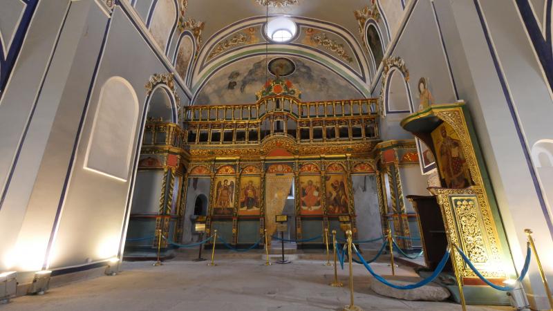 Yunan haçı planına sadık kalınarak inşa edilen bu etkileyici yapının içinde İstanbul’dan getirtilen ahşap ustalarının elinden çıkma muhteşem bir ikonastasis var.