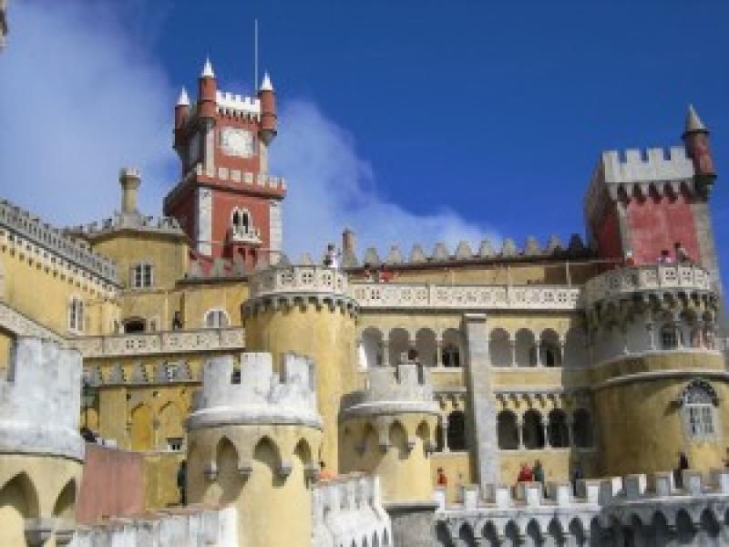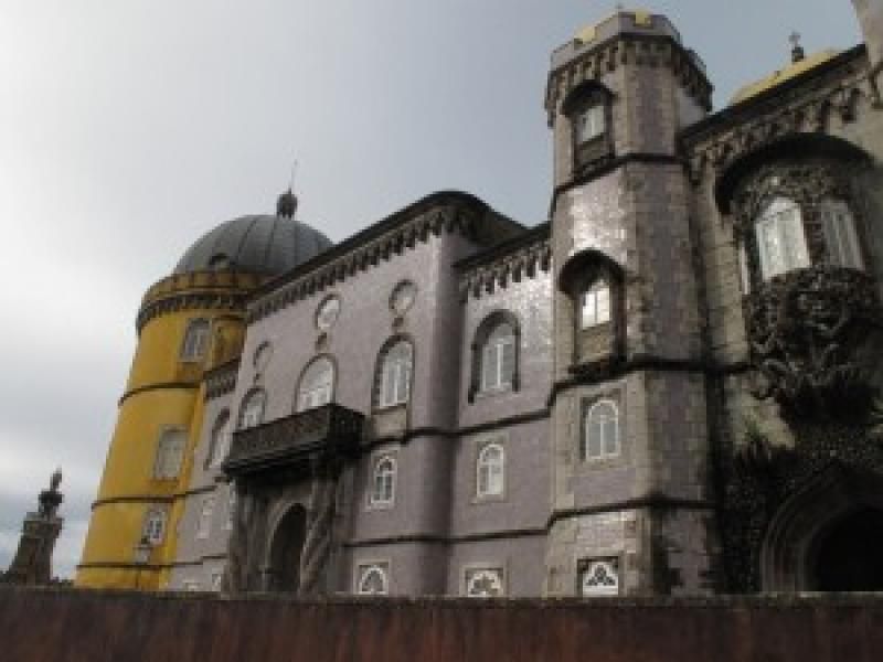 Otobüs hattı, önce kısa bir yürüme mesafesindeki tarihi şehir merkezi, Sintra-Vila’ya iniyor. İgreja de Santa Maria adlı bir capucin keşiş mezarında ve Castelo dos Mouros ( Moorish Castle ) denilen 9.yy.da yapılmış bir mağrip kalesi harabelerinde de, duraklar bulunuyor. Surlarından çok güzel okyanus manzarası görülebilen Mağrip kalesini geçince, Palacio Pena’da iniyoruz.( Pena Sarayı )