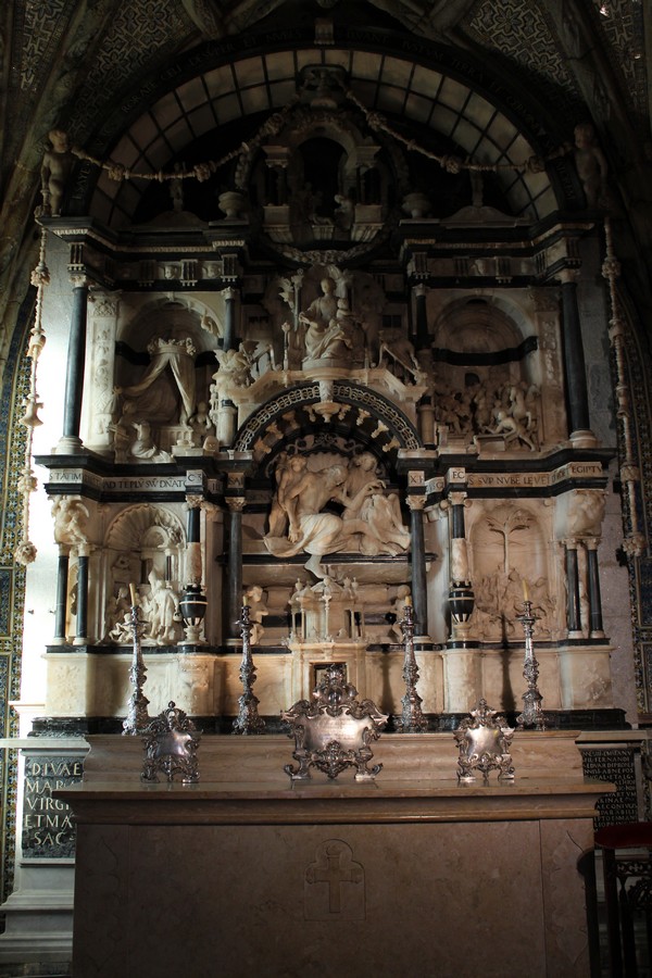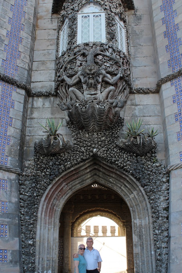 Biraz ilerleyince yine muhteşem bir kapı daha görüyoruz. Bu kapının üstünde istiridye kabuğu üzerine oturmuş üstü insan, bacakları balık olan bir heykel bulunuyor. Bu heykel Portekizli’lerin denizci bir millet olmasını simgeliyor. Kapının iki yan kolonu mercan parçaları ve istiridye kullanılarak yapılmış. Bu kapıdan geçerek sarayı dolaşıyoruz.