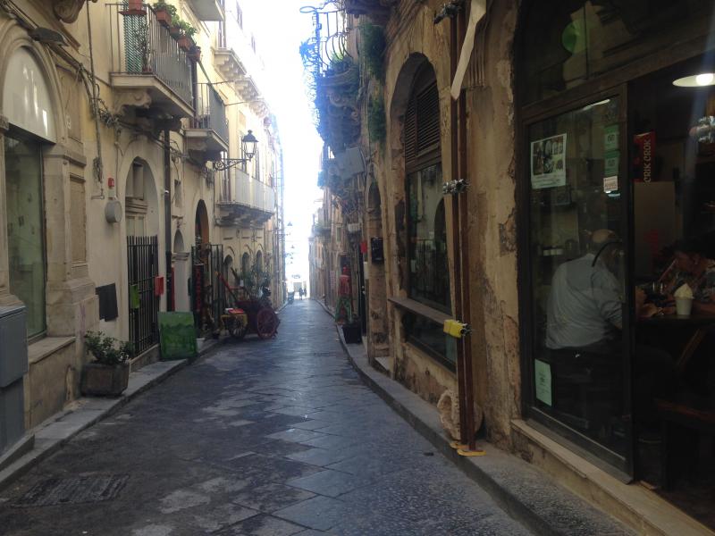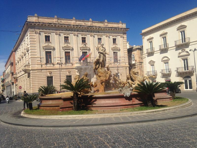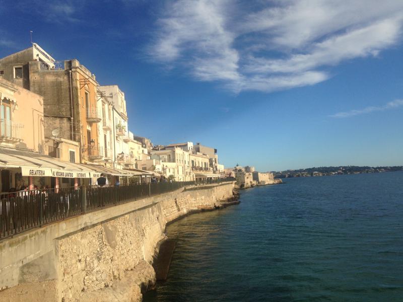 Şehrin eski tarihte kurulduğu yer (old town) aslında bir ada (Ortigia Adası). Ana karadan adaya iki adet köprü ile giriliyor. Bunlardan biri Umbertino Köprüsü (Ponte Umbertino) diğeri ise SantaLucia Köprüsü (Ponte Santa Lucia). Biz de aracımızı köprülere yakın bir yerde park edip, köprüden adaya yürüyerek giriş yaptık. Ada zaten yürüyerek gezilmeli çünkü dar sokakların, meydanların, çeşmelerin, sahil boyunca sıralanmış kafelerin ve genelde sarı rengin hâkim olduğu tarihî binaların keyfi böyle çıkar. Adanın UNESCO Dünya Mirasları Listesi'nde olduğunu da söyleyerek yürüyüşümüze başlayalım.