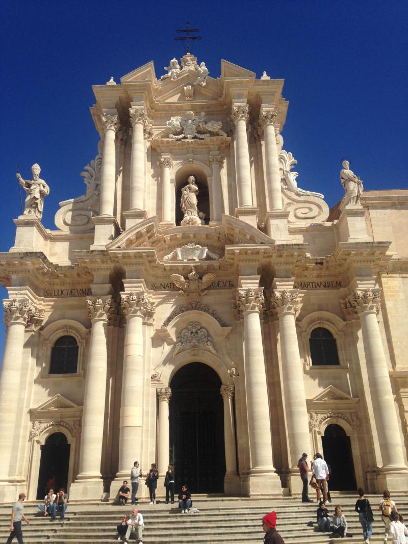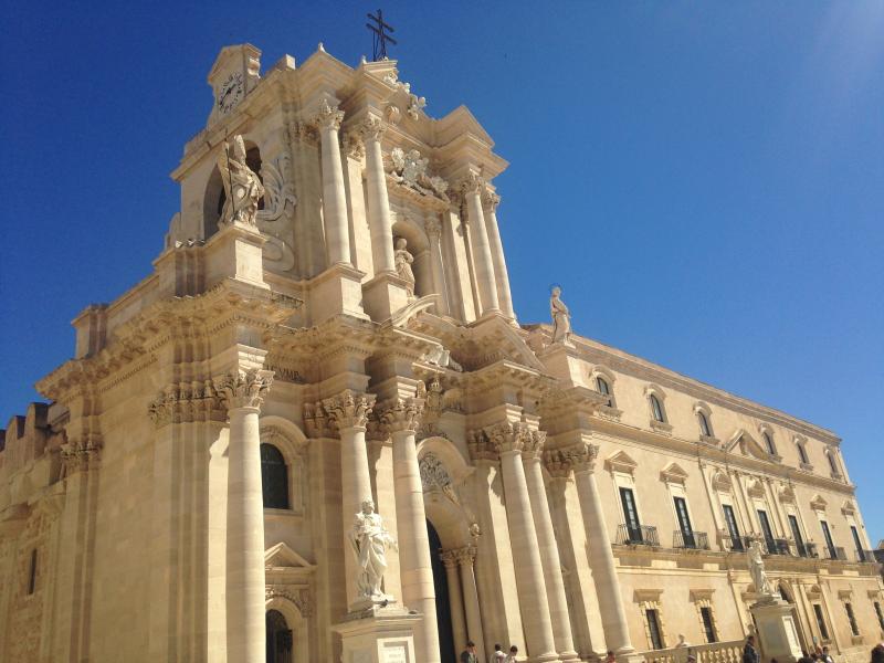 Duomo Meydanı'nda yer alan heybetli katedral, Duomo di Siracusa (Cathedral of Syracuse). Katedral 640 yılında Bizanslılar tarafından inşa edilmiş, Araplar tarafından camiye, Normanlar döneminde tekrar kiliseye dönüştürülmüş ve daha sonraki eklemelerle de bugünkü halini almış. Dikkatli incelendiğinde değişiklikler fark edilebilmektedir. Katedralin hemen devamında bir kilise daha bulunuyor, Chiesa di Santa Lucia. Kilisede İtalya'nın önemli ressamlarından Caravaggio'nun 1608 yılında yaptığı bir tablosu bulunmaktadır.