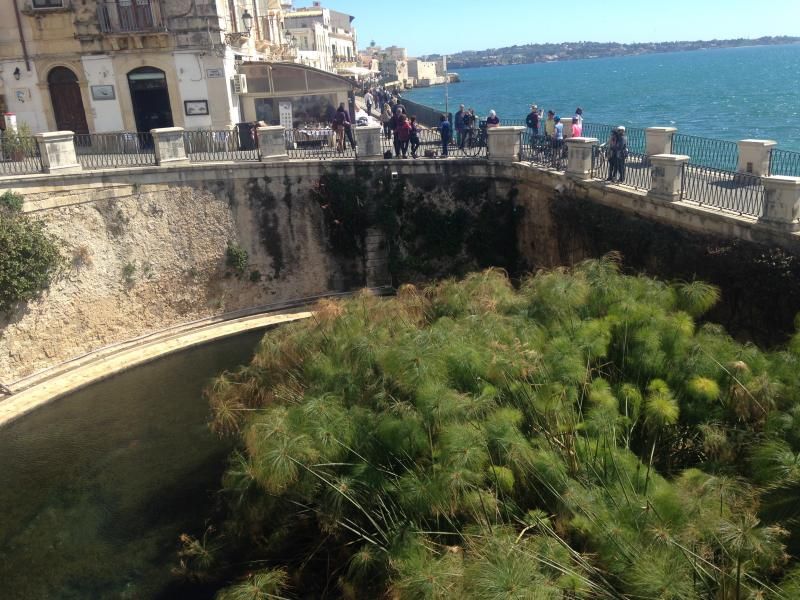 Kiliseden sonra yolu denize doğru takip ettiğinizde Largo Aretusa Meydanı’na ulaşacaksınız. Burada harika bir seyir terası ve Aretusa Pınarı (Fonte Aretusa) bulunuyor. Terasta uzun uzun manzarayı seyrettik ve pınarı inceledik. Fonte Aretusa bir tatlı su birikintisi ve içerisindeki papirüsler ile ördekler, kırmızı balıklarla turistler ve yereller için çekim merkezi.