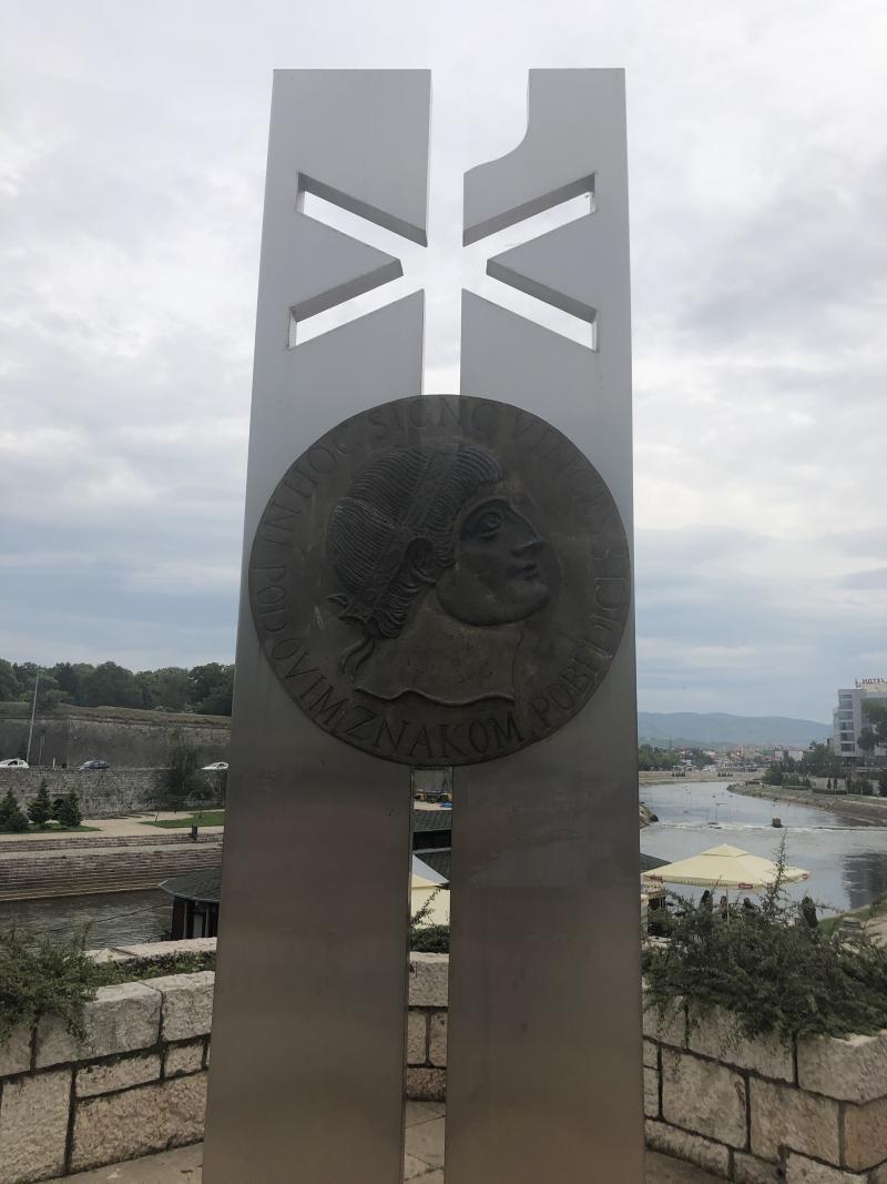 Meydanın tam ortasındaysa Kentin Osmanlı hakimiyetinden kurtuluşu ve 1. Dünya Savaşı anısına 1937 senesinde buraya dikilmiş olan Özgürlük Anıtı yer alıyor. Meydanı tarihi Niş Kalesi’ne bağlayan köprünün hemen yanı başındaysa Konstantin’e adanmış bir heykel var. Rivayete göre Konstantin rüyasında gökyüzünde güneşin önünde bir haç görür, önünde de Latince bir cümle yazar: “In hoc signo vences”. Anlamı şudur: “Bu işaretle zafere!” İşte buradaki anıtta da bu simgeyi görüyoruz.