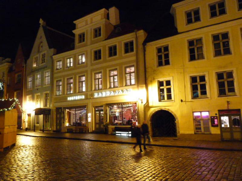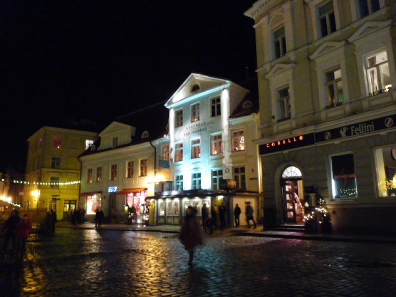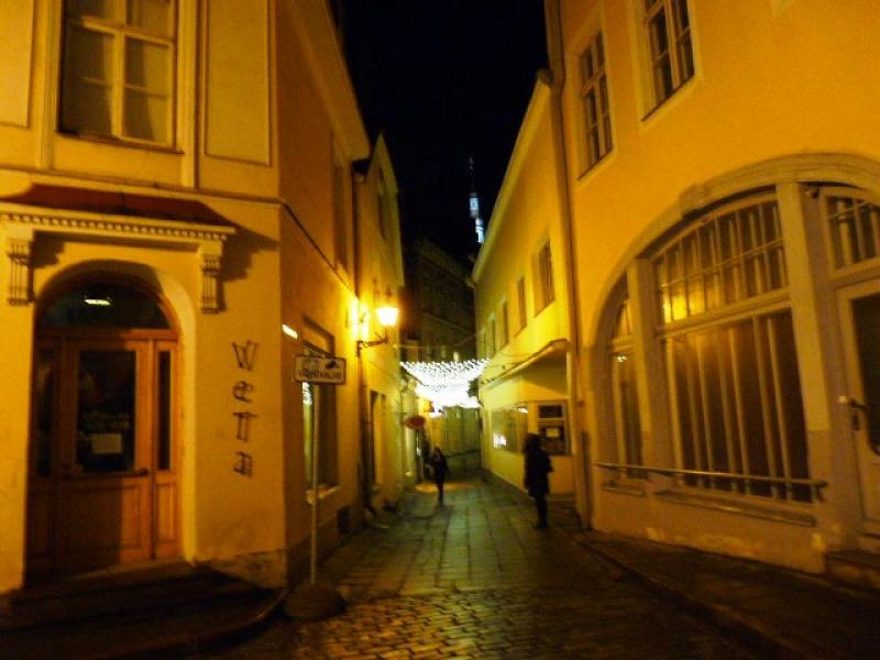 4,5 saatlik yolculukla Kuzey Avrupa’nın Estonya’daki en eski başşehri olan Tallinn’e gittiğimizde hava kararmış olmasına rağmen otele yerleşip hemen sokağa çıkıyoruz. Hava soğuk mu soğuk ama binalar, kilise, restoranlar ışıklandırılmaları o kadar güzel ki noel süsleri ile iç içe öyle hoş görünüyorlar ki sokaklar, küçük evler, parke taşlı şehir meydanı her şey bir masal şehri gibi görüntüsünde; soğuğa aldırmıyoruz.