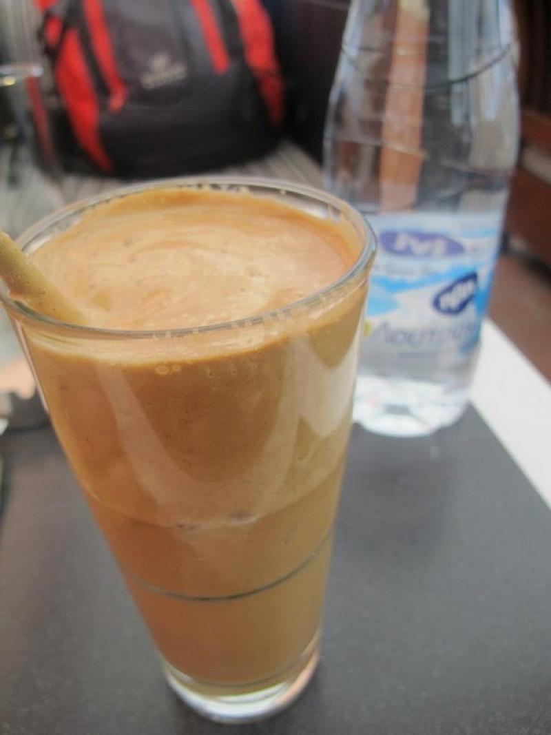 Ertesi gün herkesin elinde gördüğüm frappelerden içmek için bir kafeye oturdum.Bakınız : http://tr.wikipedia.org/wiki/Frapp%C3%A9