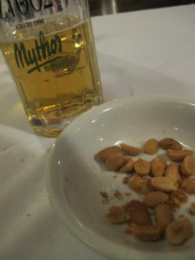 Selanik'te gezecek yer kalmayınca aklıma yeme içme mekanları geldi ve başka bir bira markası olan "Mythos" denemek için bara girdim. Bu bira Tuborg tadında ve tadı güzel.