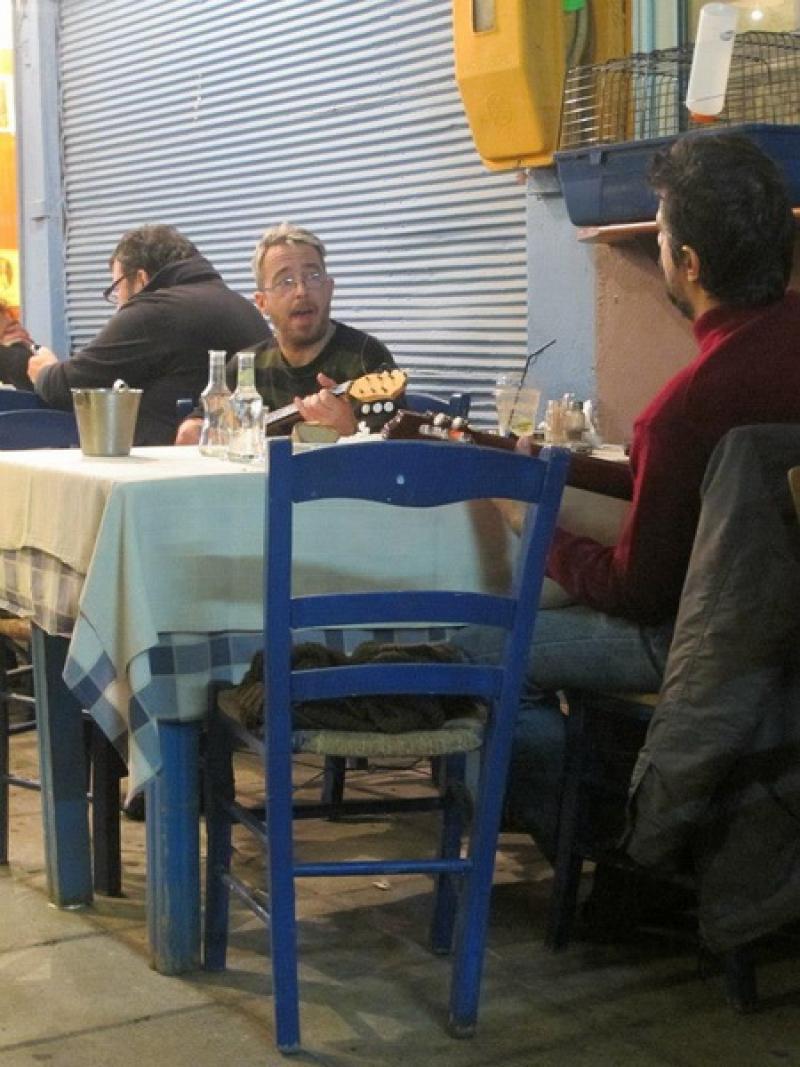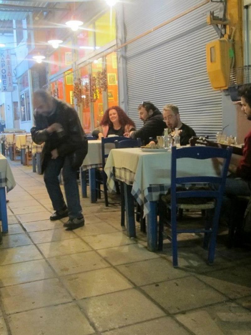 Pazar gezmesi de bitince soluğu Retsina içebileceğim pasajda alıyorum. Gün içerisinde bu pasajı gezip neler var neler yok diye incelemiştim. İnsanlar güler yüzlü ve fiyatlar uygun. Retsina bir tür Yunan şarabı ve sunumu biraz farklı. Ölçekle satılıyor ve fiyatı 1 € kadar. Pasaja akşam gittiğimde öğlenki görüntünün aksine kalabalık bir ekip ve mandolinler eşliğinde şarkı söyleyen insanları görüyorum. Çekine çekine kalabalığın içinde masaya oturunca etrafımdaki meraklı gözler nereden geldiğimi ve kim olduğumu öğrenmek istiyorlar. Ben de Türkiye'den geldiğimi söyleyince insanlar ikramlarda bulunuyor. Kimi cips, kimi tuzlu fıstık, kimi şarap. Güleryüzlerini hiç esirgemeden içmeye devam ediyoruz. O an tüm çekingenliklerimin yersiz olduğunu anlıyorum. Gezi boyunca kime adres sorduysam ya da sohbet ettiysem Türk olduğumu öğrenince daha ilgili davrandı.