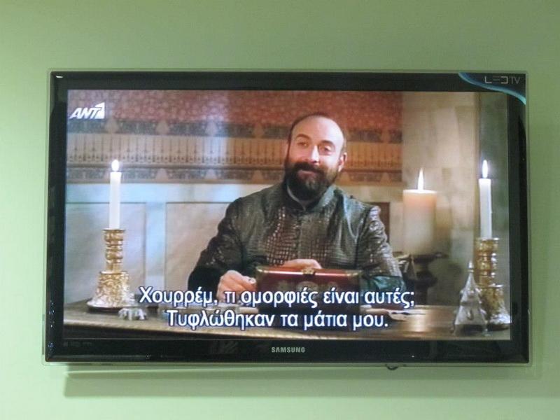 Son olarak Yunanistan'da nereye giderseniz gidin akşam saatlerinde Türk dizilerini izleyebilirsiniz. Ses Türkçe fakat altyazı Yunanca.