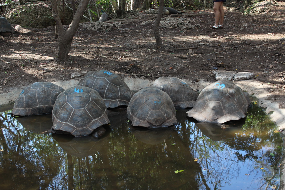 Adadaki görülmeye değer diğer canlı ise Prison Island diğer adıyla Chango adasında yaşayan dev kara kaplumbağaları. Adadaki dev kara kaplumbağaları 1919 senesinde Seyşeller hükümetinin Zanzibar sultanına hediye ettiği kaplumbağaların çocukları ve torunları. Günümüzde adada yaklaşık 100 – 110 civarında dev kara kaplumbağası var. 200 yaşına kadar yaşayabilen bu kaplumbağaların yaşları kabuklarının üzerine mavi renklerle işaretlenmiş.