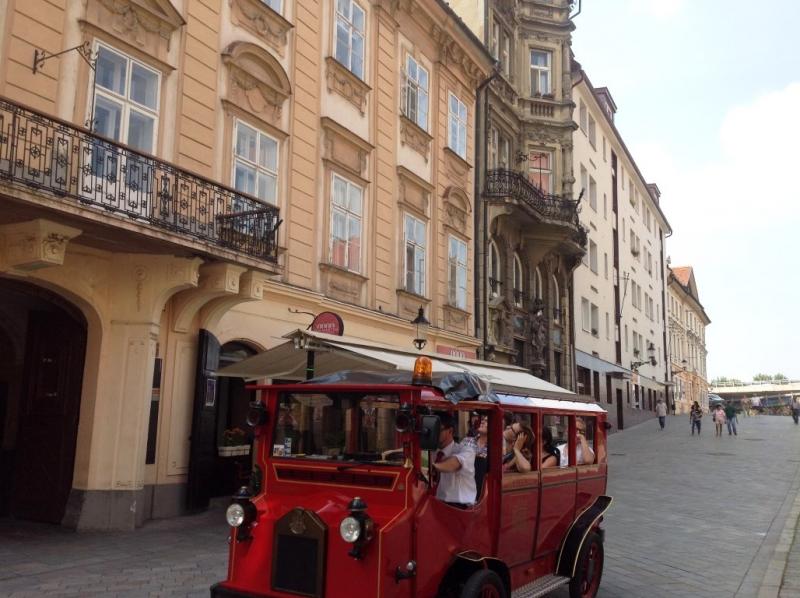Kaleden teraslanmış ve heykellerle süslenmiş yollardan inerek Eski Şehir'e geliyoruz. Buradaki çok güzel mimarisi olan tarihi binalar ve parke taş döşemeli daracık sokaklarda dolaşırken kırmızı renkli 8 kişilik mini turist arabalarını gördük. Her önemli bina önünde durup bilgilendiren bu mini turist arabalarını çok beğendik. Şehri yürüyerek dolaşamayanlar için çok iyi bir seçenek.