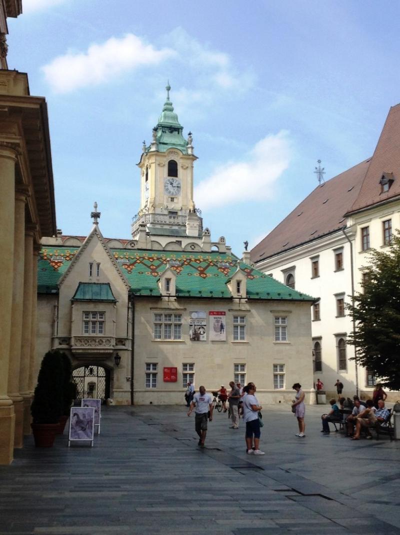Gemimiz Tuna kıyısında Slovakya National Galeri’nin önündeki iskeleye yanaştı. Gemide aldığımız kahvaltı sonrası şehri keşfetmeye başlıyoruz. Bratislava’da 3 saatimiz var, bu yüzden hızlı hareket etmeliyiz.