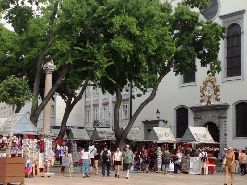Bu meydandaki ahşap kulübelerde pek çok hediyelik eşya satışları yapılıyor. Bu küçük tezgâhların çatı kısımları Bratislava manzaraları ile kaplanmış. Bu meydan zaman zaman dans ve müzik gösterilerine ev sahipliği yapıyormuş.