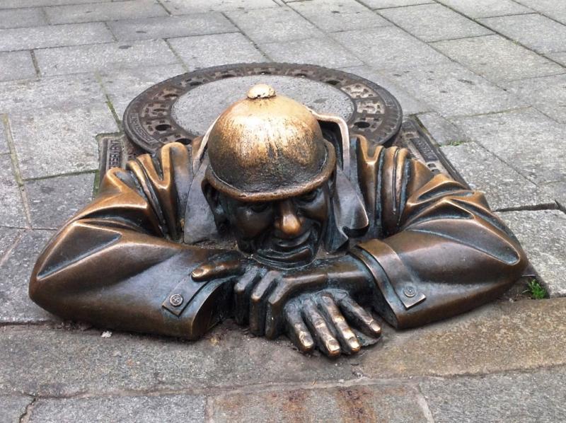 Şehirde pek çok heykel olduğundan bahsetmiştim. Bu heykellerin en ünlüsü ve Bratislava’nın sembolü Cumil. Bir rögar kapağı altından… Başında bareti ile size gülümseyerek bakan belediye görevlisi Cumil’in bronz heykeli önünde sıra oluşmuş.