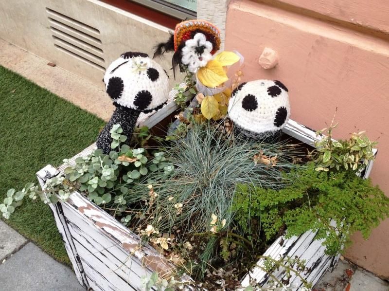 Şehirde dolaşırken yer yer tasarımla ilgili el yapımı küçük objelere rastladık. Örgü ile yapılmış saksı süsleri, mantarlar, çiçekler oldukça ilginçti.