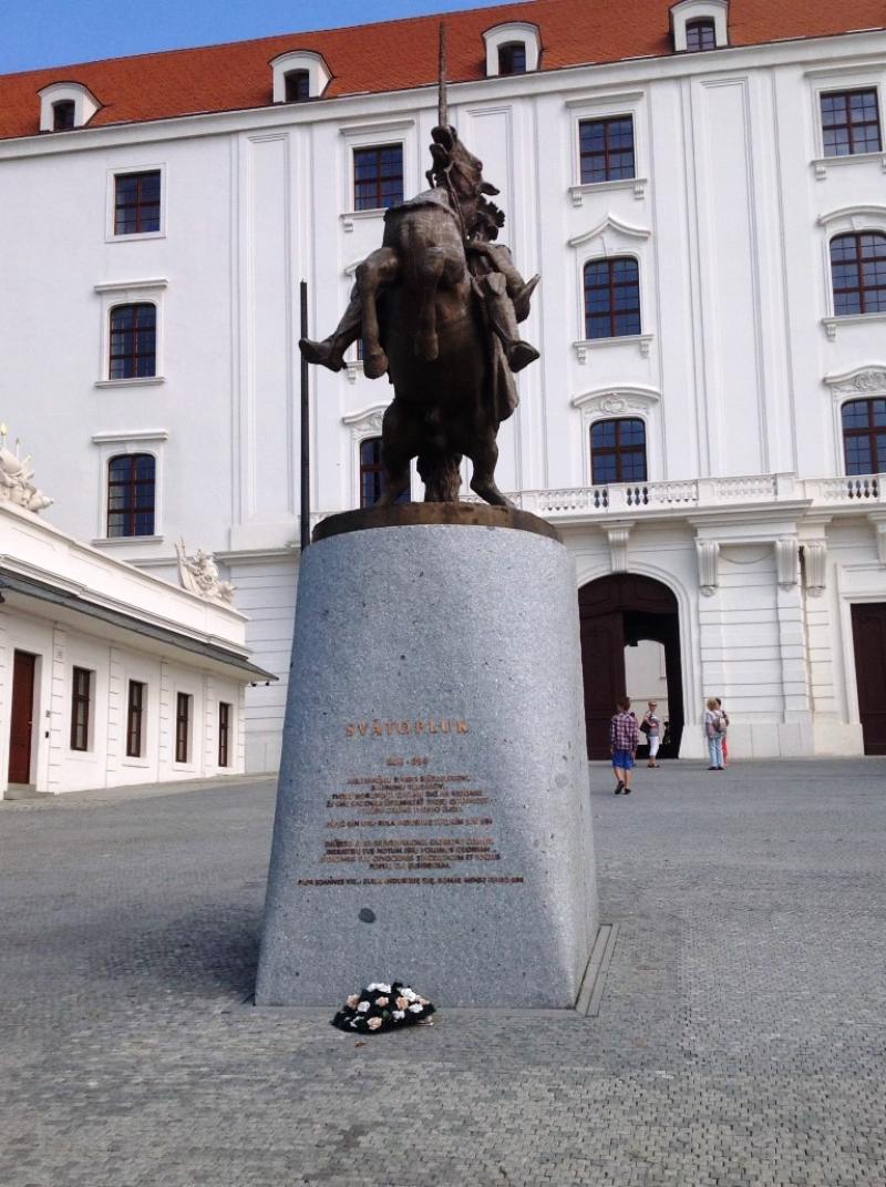 Kalede 4 adet gözetleme kulesi var. Kale içinde tarih müzesi, müzik müzesi, kültür müzesi yer almakta ve biz bunların hiçbirine giremedik. Sadece kale girişindeki Svatopluk’un şaha kalkmış at üstündeki heykelini, Tuna üzerindeki köprüleri ve karşı kıyıdaki komünizm dönemi binalarını gördükten sonra kültür müzesi yanındaki daracık merdivenlerden inerek eski şehir meydanına geldik.