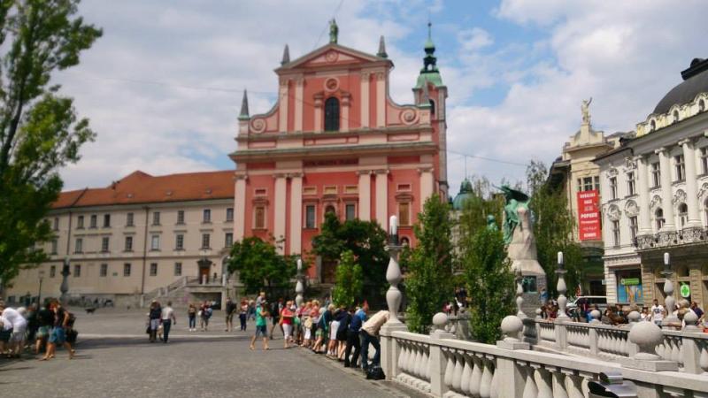 Celje'den 78 km daha yol aldıktan sonra başkent Ljubljana'ya vardık. Slovenya'nın en büyük şehri olan Ljubljana'nın nüfusu yaklaşık 280 bin kişidir. Şehrin ortasından su kanalları geçmektedir. Kanalın kenarı büyük ölçüde Eskişehir'de Porsuk Çayı'nın kenarında olduğu gibi yeşillendirilmiş ve oturmak için taştan basamaklar yapılmıştır. Şehrin en önemli meydanı olan Preşeren Meydanı da kanalın kenarında olup, meydana yakın yerlerde kanal kenarlarında kafe ve restoranlar yer almaktadır.