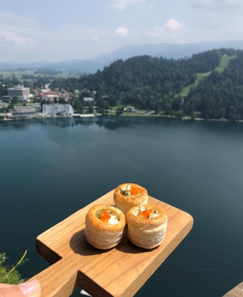 Biz gezimize ilk olarak Bled Kalesi’nin restoranında huzur veren manzaraya karşı Bled lezzetlerini tadarak başladık.