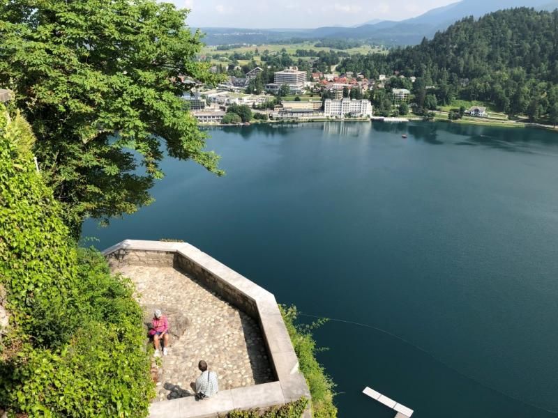 Sık ağaçlar arasından kıvrıla kıvrıla çıktığımız yol bizi ilk olarak Bled Kalesi’ne getirdi. Burası Bled Gölü’nün ve Bled’in ortasındaki adanın en güzel fotoğraflandığı yer. Yani tüm kartpostalların olmazsa olmaz manzarası burada. Maalesef biz gittiğimizde tam öğle vakti olduğundan güneş biraz ters açıda kalıyordu. Buna rağmen manzara baş döndürmeye devam ediyordu.