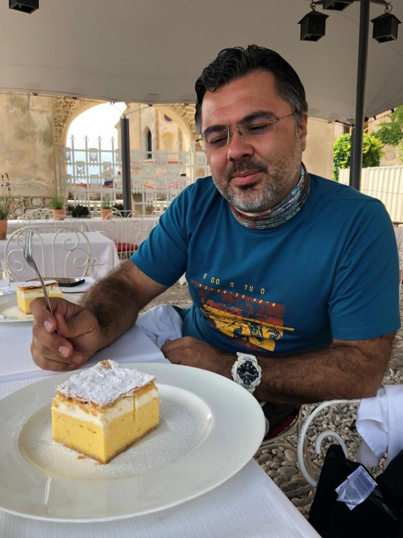 Yemeğin sonunda gelen Bled keki de unutamayacaklarımız arasında. Üstü pudra şekerli çıtır hamurun altını kıvamlı bir muhallebi tamamlamış. Yemek de sunum da ortam da çok güzeldi.