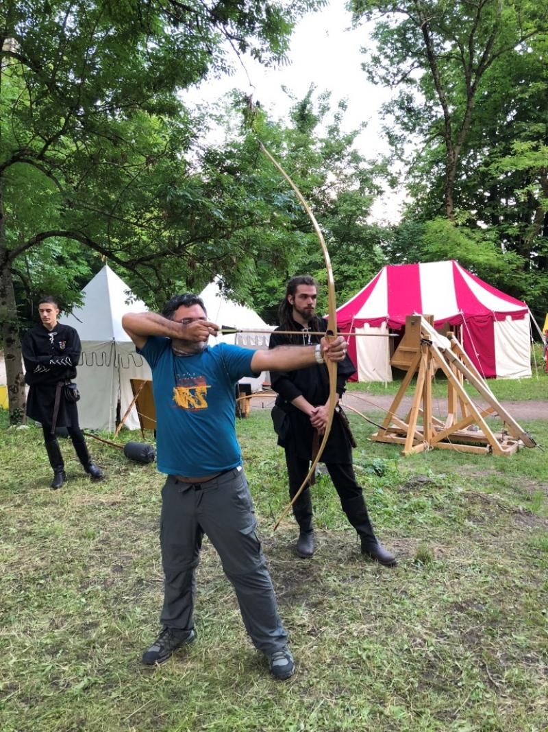 Biz gittiğimizde kalenin içinde bir takım tadilatlar devam ediyordu. Tuğçe buraya 7-8 sene önce geldiğinde kalenin içinde Orta Çağ’ı anlatan bir takım şovlar oluyormuş. Orta Çağ dönemini teatral olarak anlatan bir grup burada etkileyici şovlar yapıyormuş ancak biz gittiğimizde bu tadilat dolayısıyla bu gösterileri kalenin hemen çıkışında gördük. Orta Çağ dönemi kostümleri içindeki görevliler o dönemi size hissettirmek için burada ayrı bir alan yaratmışlar. Okçuluk, dericilik gibi o döneme has bazı unsurları tecrübe edebiliyorsunuz.