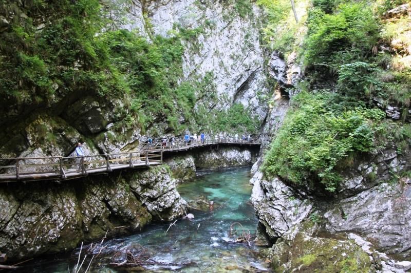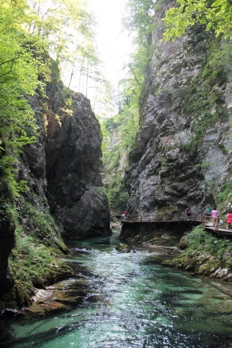 Bizim gezdiğimiz bölüm bu devasa milli park bölgesinin Julian Alpleri eteklerine doğru Rodovna Nehri’nin bir bölümüydü. Bu bölgeye Vintgar Gorje deniliyor 1891 yılında keşfedilmiş adeta büyük bir kanyon, yaklaşık 1600 metre kadar orman içlerine yürüyerek gidilebiliyor. Bu tabiat harikası bölgeye kısmen ziyaretçilerin girebilmesi için de dik kayaların kenarlarına ve nehrin kimi bölümlerine ahşap yollar ve köprüler yapmışlar. Kayaların arasından incecik yapılan ahşap köprülerde ve yollarda yürümek ve Alplerden gelen sulardan ellerinizi uzatıp içmek tarif edilmez bir zevkti.