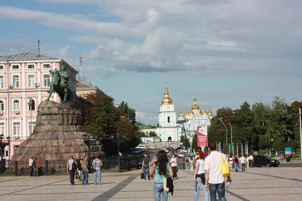 Aya sofya meydanındaki Bogdan heykeline sırtınızı döndüğünüzde karşınızda çok geniş bir park var. Bu parkın solunda ise mavi renkli St. Mikael Kilisesi. Mikael kilisesine yürünen yol kestane ve ıhlamur ağaçları ile kaplı. Dini yapıları hep renkleri ile belirtmeye çalışıyorum ki kafanız karışmasın. Ben ilk gittiğimde ha şimdi burası galiba altın kapı, yok yok burası değilmiş, sanırım şurası derken oldukça zorlanmıştım. Biz bu kilisenin içini gezmedik, ama yanından direkt aşağıya indiğinizde özgürlük meydanına ulaşıyorsunuz.