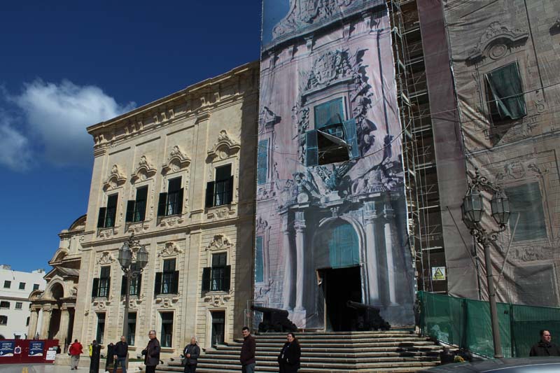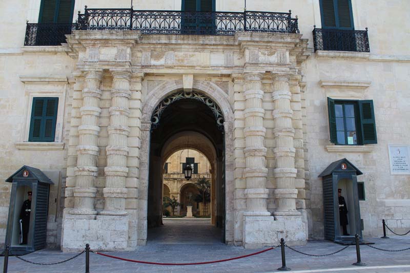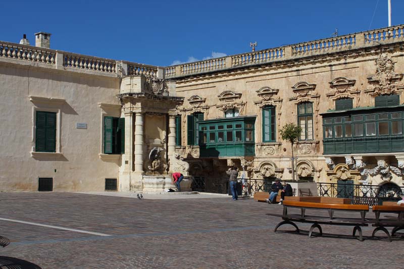 Binanın cephesi 100 m. uzunluğunda olup, 1580 yılında Tarikat Şövalyeleri tarafından yaptırılmış. 18. yy.’da büyük üstat Pinto, binanın köşelerindeki yuvarlak renkli balkonları ve bazı eklentileri ilave ettirmiş. Önceden randevu alarak bazı bölümler gezilebiliniyor. Mutlaka gezilmeli. Burayı gezerken tarikatın zenginliği ve gücünü hissedebiliyorsunuz. Birinci katta avludaki odaların bulunduğu koridor freskler, zırhlar ve portrelerle dekore edilmiş. Taht odasına çok görkemli etkileyici bir kapıdan giriliyor. Odada Osmanlı kuşatmasını anlatan 1576 yapımlı frizi görüyoruz. Burada büyük üstadın dinleyicileri için ayrılmış kırmızı oda, uşakları için ayrılmış sarı oda, yemek salonu ve goblen odasını geziyoruz. Goblen odası konsey salonu olarak kullanılmış, duvarlarda tarikata 1967’de hediye edilen goblenler bulunuyor. Zemin kattaki silah odası çok etkileyici. Burada da büyük üstadlara ait zırhlar, Osmanlı kuşatmasında kullanılan silâhlar, toplar, mızraklar, kalkanların bulunduğu 5 bin parçalık bir koleksiyon sergileniyor. Silah odasının en önemli parçası ise büyük üstat Wignacourt’un altın işlemeli tören giysisi.