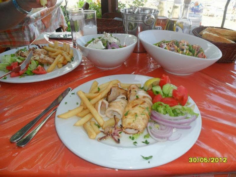 Her gün yaptığımız gibi plajdaki o mükemmel manzara karşısında her gün yediğimiz ve doyamadığımız kalamar ızgara, Grek salata, ahtapot salatası ve tabii ki uzo siparişimizi verdik bekliyoruz : )