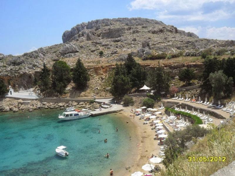 Lindos bölgesi bizim Rodos Adası'nda en çok beğendiğimiz bölge... Tepedeki kaleye biz çıkmadık ama eşeklerle çıkıp gezebiliyormuşsunuz. Buradan bakmakla olmuyor aşağıya inip şu mükemmel plaja yerleşmeyi planlıyoruz : )