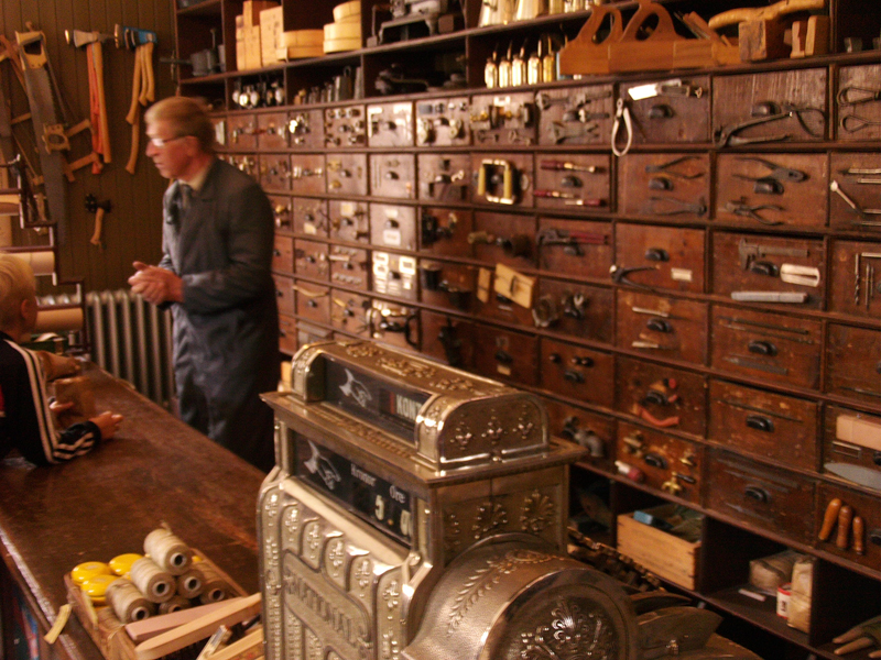 Tek katlı 1470’lerin ahşap evleri, bu evler içinde taze açılan yufkalar, yöresel çörekler pişirilip satışa sunuluyor. Buradaki görevlilerin kıyafetleri de hep eski döneme ait. Her evin önünde ne dükkânı ise, ona ait sembol asılmış. Örneğin semerci dükkânının önünde semer, kitapçı önünde kitap, bıçakçı önünde bıçak asılmış, tabela yerine.