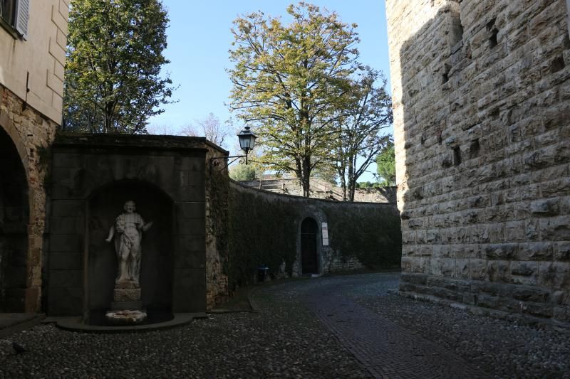 Buraya çok yakın konumdaki Sant'Allesandro Katedrali dışarıdan oldukça sade ve mütevazi görünse de içi büyüleyici. Özellikle yanlarında 2 tane melek heykeli duran sunağın arka tarafında yer alan yedi tane yağlıboya tablo oldukça gösterişli.17. Yüzyıl’da mimar Vincenzo Scamozzi tarafından yapımına başlanan Nuovo Sarayı, ancak 1926'da tamamlanmış. Günümüzde kütüphane olarak hizmet veren bina Angelo Mai Kütüphanesi olarak anılıyor ve halen kullanımda.